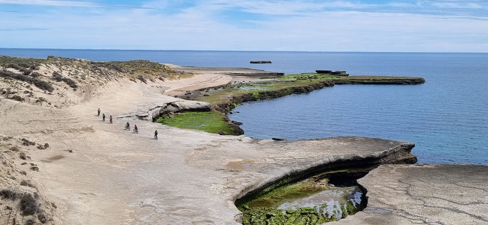Salimos desde Puerto Pirámides equipados para la aventura, ya a pocos kilómetros nos encontramos con gigantescas dunas y su contraste con el mar azul que baña las costas. Nuestra aventura continua por senderos de guanacos y descensos por cañadones para bajar a las restíngas de la formacion del Ojo Azul donde podremos ver los paisajes mas hermosos de nuestra travesía. Ballenas a metros de la costa, fósiles de vida marina de hace millones de años , grietas por donde se adentra el mar azul y piletones naturales con aguas cristalinas.